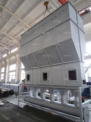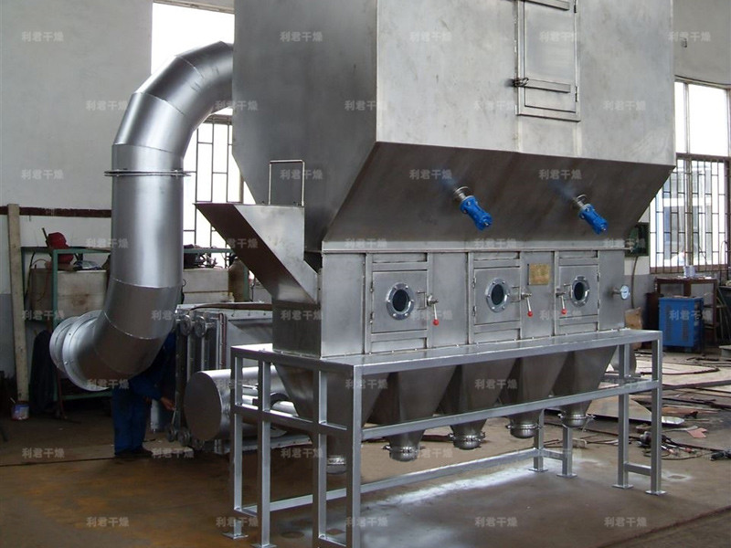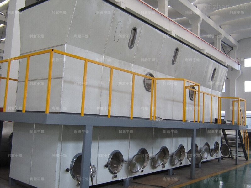 潔凈的熱風(fēng)經(jīng)閥板分配進(jìn)入床體內(nèi),從加料器進(jìn)入的濕物料被熱風(fēng)形成沸騰狀態(tài)。由于熱風(fēng)與物料廣泛接觸,增強(qiáng)了傳熱傳質(zhì)的過程,因此在較短時(shí)間內(nèi)就可干燥。如用連續(xù)型,物料從床體的一頭進(jìn)入,經(jīng)過幾十秒至幾分鐘沸騰干燥,自動(dòng)從床體另一頭流出。本設(shè)備一般進(jìn)行負(fù)壓操作。