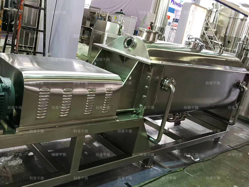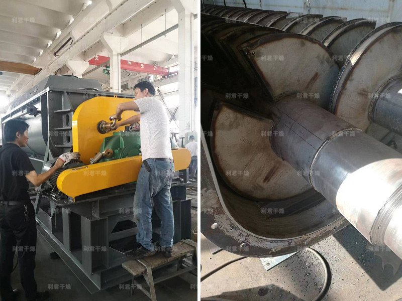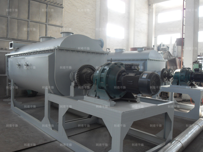 槳葉式干燥器是一種在設(shè)備內(nèi)部設(shè)置攪拌漿,使?jié)裎锪显跇~的攪動(dòng)下,與熱載體以及熱表面充分接觸,從而達(dá)到干燥目的的低速攪拌干燥器,結(jié)構(gòu)形式一般為臥式,雙軸或四軸。漿葉式干燥器分為熱風(fēng)式和傳導(dǎo)式