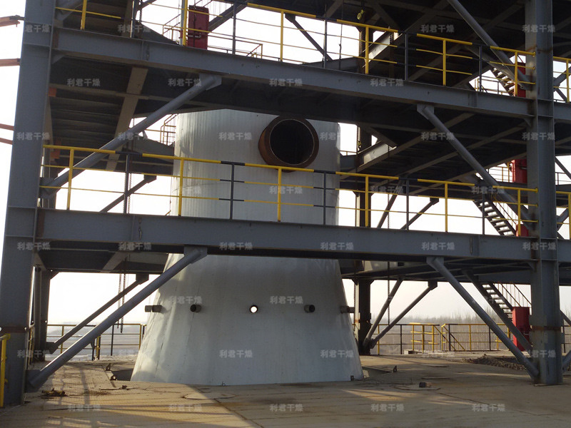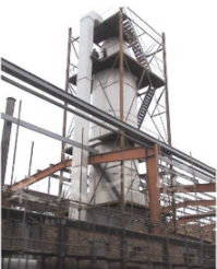 本機(jī)組工作過程為料液通過隔膜泵高壓輸入,噴出霧狀液滴,然后同熱空氣并流下降,大部分粉粒由塔底排料口收集,廢氣及其微小粉末經(jīng)旋風(fēng)分離器分離,廢氣由抽風(fēng)機(jī)排出,粉末由設(shè)在旋風(fēng)分離器下端的授粉筒收集,風(fēng)機(jī)出口還可裝備二級(jí)除塵裝置,回收率在96-98%以上。