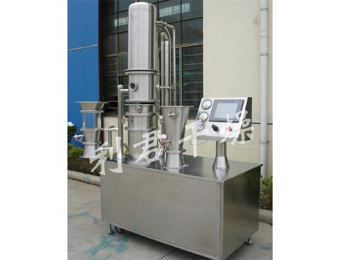 FBL旋流流化床制粒包衣機是將流化床做成葉片式結構的流化床,并使葉片呈一定斜度,讓氣流從葉片的間隙通過,形成環(huán)流狀的強大氣流,使物料呈旋渦狀似的有序運動,同時安裝在側壁的氣動噴嘴將粘合劑或包衣液噴入呈旋渦狀的物料層,從而將粉體制成顆?;颢@得連續(xù)均勻的衣膜。