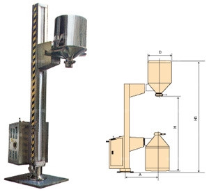 ??TJG 系列固定提升加料機由兩部分組成,即提升機及底座。提升機由機架、液壓提升系統(tǒng)及料門翻轉機構組成。工作時,先將提升機的料門與料桶扣合,啟動提升操作桿,料門與料桶一起上升,啟動翻轉操作桿,料桶即可番轉180度,呈底桶向上姿態(tài)并移動到所需位置,利用料門上出料蝶閥,可很容易將物料加入所需的工藝設備中。